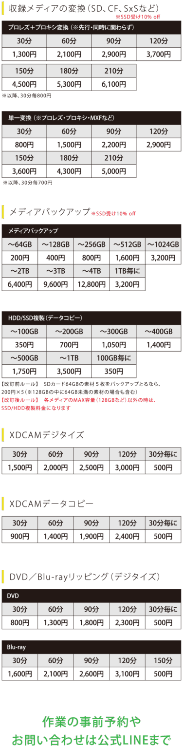 撮影データの変換作業 及び テープメディアからのデータ化作業など